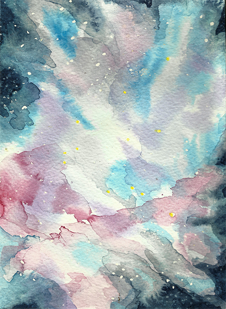 "Kosmische Nebel1", Aquarell auf Papier, 17,5 x 12,5 cm, 2020