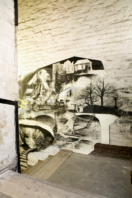 Flughafenstr.46, 2.HH.Treppenhaus, DetailMischtechnik auf Papier und Backstein |