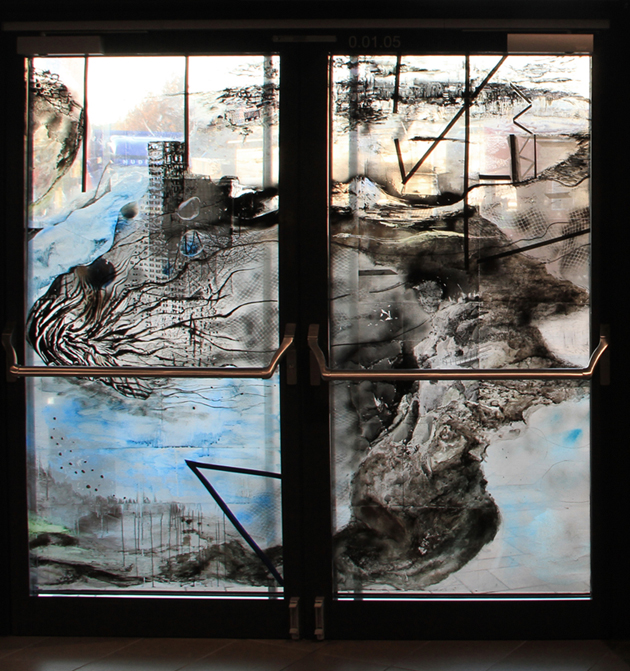 "Rauschen", Mischtechnik auf Verbundsicherheitsglas, 2012