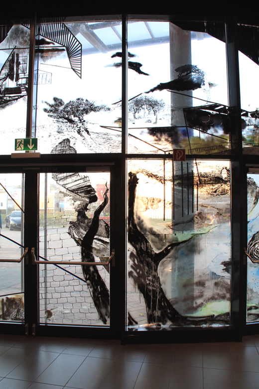 "Rauschen", Mischtechnik auf Verbundsicherheitsglas, 2012