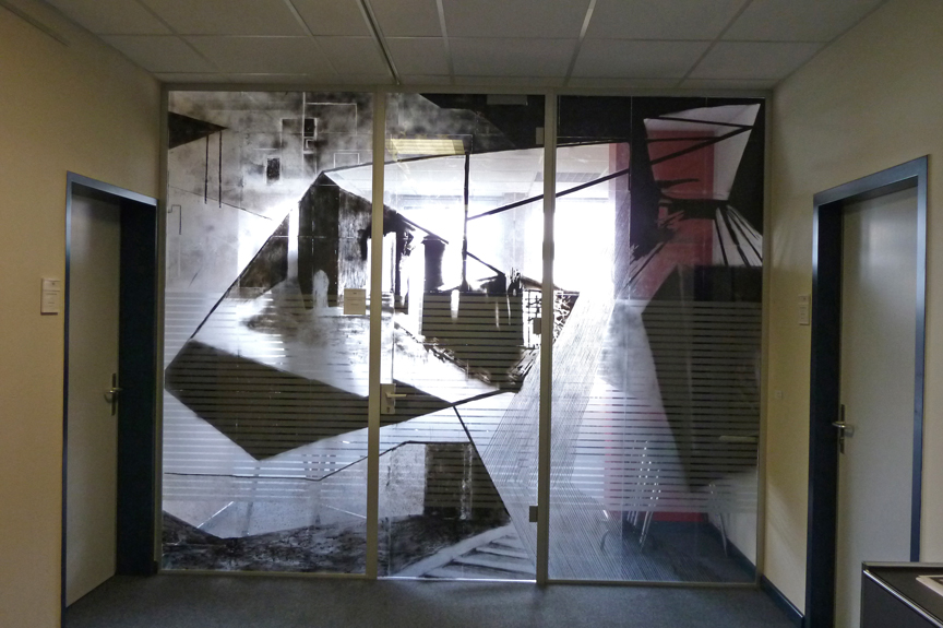"Rauschen", Mischtechnik auf Verbundsicherheitsglas, 2012