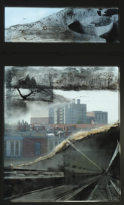 "Rauschen", Mischtechnik auf Verbundsicherheitsglas, 2012