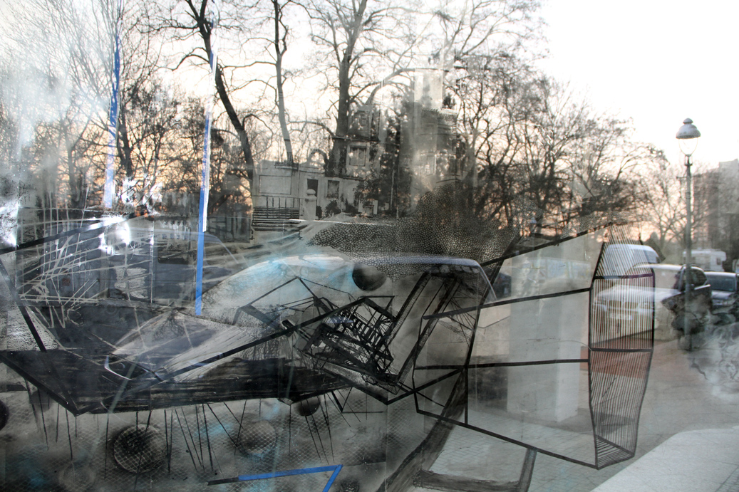 INSITE OUTRaumarbeit im SCHAU FENSTER, Mischtechnik auf Folie, Berlin Kreuzberg, 2011 |