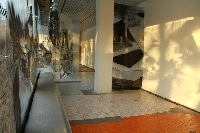 Raumarbeit im SCHAU FENSTER, Mischtechnik auf Folie, Berlin Kreuzberg, 2011